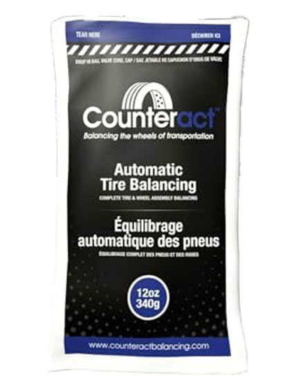 Counteract est le seul produit pour l'équilibrage des pneus dont l'efficacité a été prouvée pour contribuer à la réduction de la consommation de carburant. Les "perles" équilibrantes sont dispersées par la force centrifuge lorsque le pneu commence à rouler. À mesure que la force centrifuge augmente, les "perles" se déplacent dans la direction opposée du mouvement ascendant et descendant de la suspension. Les "perles" continuent de se déplacer en cercle jusqu'à ce que l'ensemble de la roue soit équilibré.